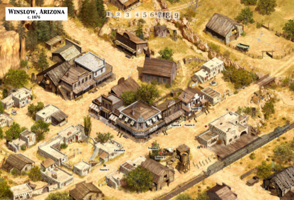 Jack, Louis, Royce, Ezra and Shady, perhaps better known as The Oak Hill Boys, ride into Hardy, looking for the Four Aces. They were gonna head to the saloon to further investigate a transaction that may or may not have already taken place there: a Horton Reyes was to bring a map to an “AM.”